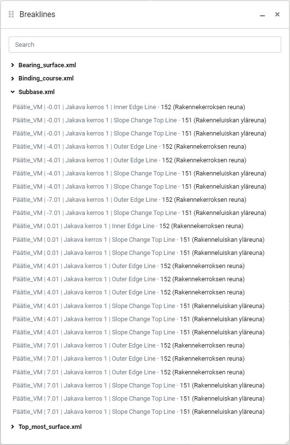 Breaklines -window lists all of the files that contain breaklines and are visible on the map.&#x20;