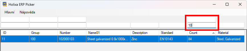Sheet thickness to search filter transfer