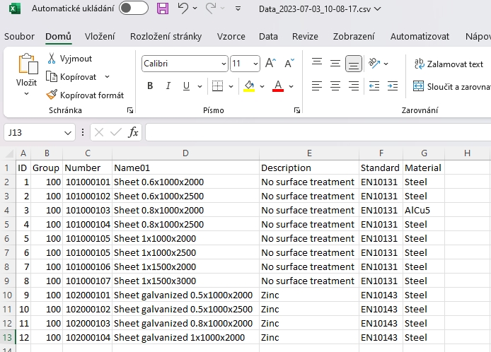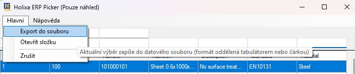 The exported file contains the complete data currently displayed in the table of the Be.Smart ERP Picker window (Preview only), taking into account the filtering of values.