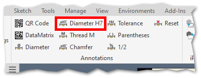 This command adds the diameter symbol before the dimension text and the fits symbol (or just the tolerance for the hole or shaft) after the dimension text. Fits symbols can be adjusted in Holixa T4I settings.
