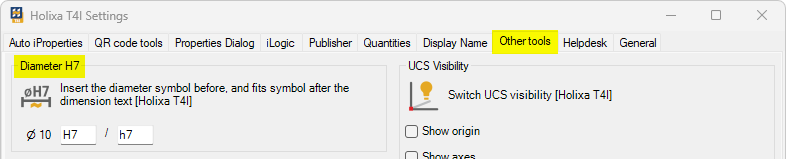 `Holixa T41 ribbon -> Holixa T4I -> Edit settings -> Other tools tab -> Diameter H7`.