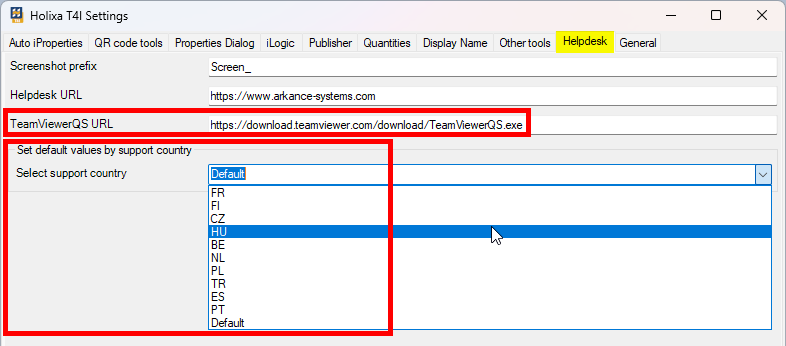 `Holixa T4I -> Holixa T4I -> Edit settings -> Helpdesk tab -> TeamViewerQS URL`