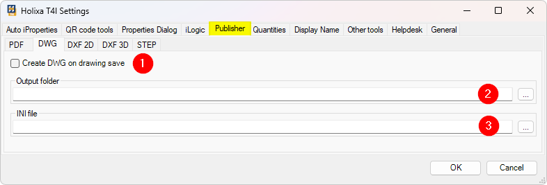 `Holixa T4I -> Holixa T4I -> Edit settings -> Publisher -> DWG`