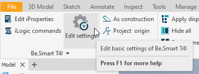 This command contains a variety of settings for different commands provided in T4I. Most of the commands in the window are 'reflected' in the [advanced settings](https://help.besmart.software/t4i/commands-overview/be.smart-t4i/advanced-settings) window.