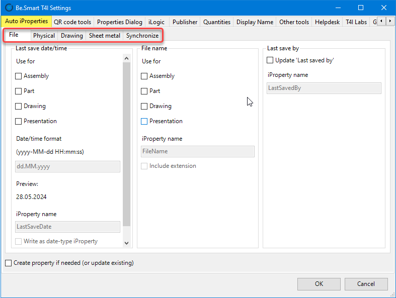 Auto iProperties contains functionality for background automation of iProperties creation, filling, updating, and synchronization between model and drawing files.