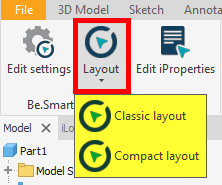 When you click the *Layout* command on the Be.Smart T4I panel while the *InventorControlled* mode is active, your changes will be reset to selected defaults (T4I will ask you first).