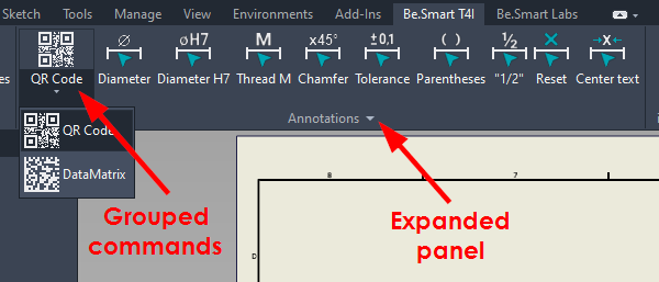 The compact layout keeps the most used T4I commands (+ some others) visible, whereas the rest are hidden on expanded panels. Some commands are also (newly) grouped in the command drop-down menus.