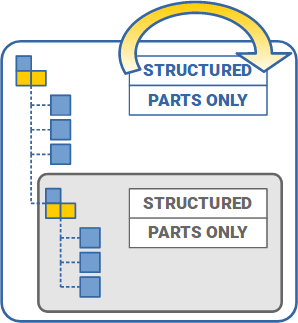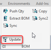 The Update command updates all structured item numbers in dependent subassemblies of the current (main) assembly.