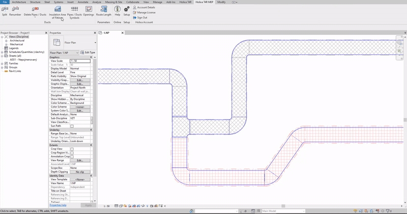 The Insulation Area of Fittings tool calculates the estimated insulation surface area that is used on pipes and duct fittings.